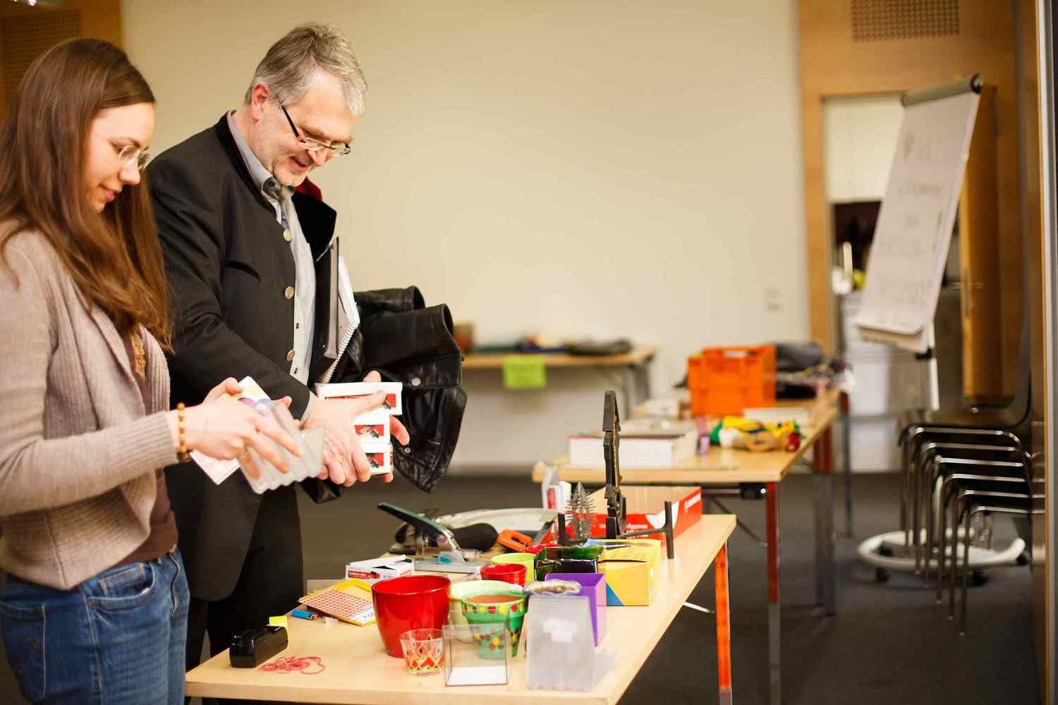 Egal ob Mappen, Kleber, Scheren, Locher, Stifte etc. - alles, was von diversen Abteilungen nicht mehr gebraucht wurde stand zur freien Entnahme im Parterresaal bereit und wartete auf einen neuen Besitzer. So wurde bereits verstaubten Dingen neuer Glanz verliehen.