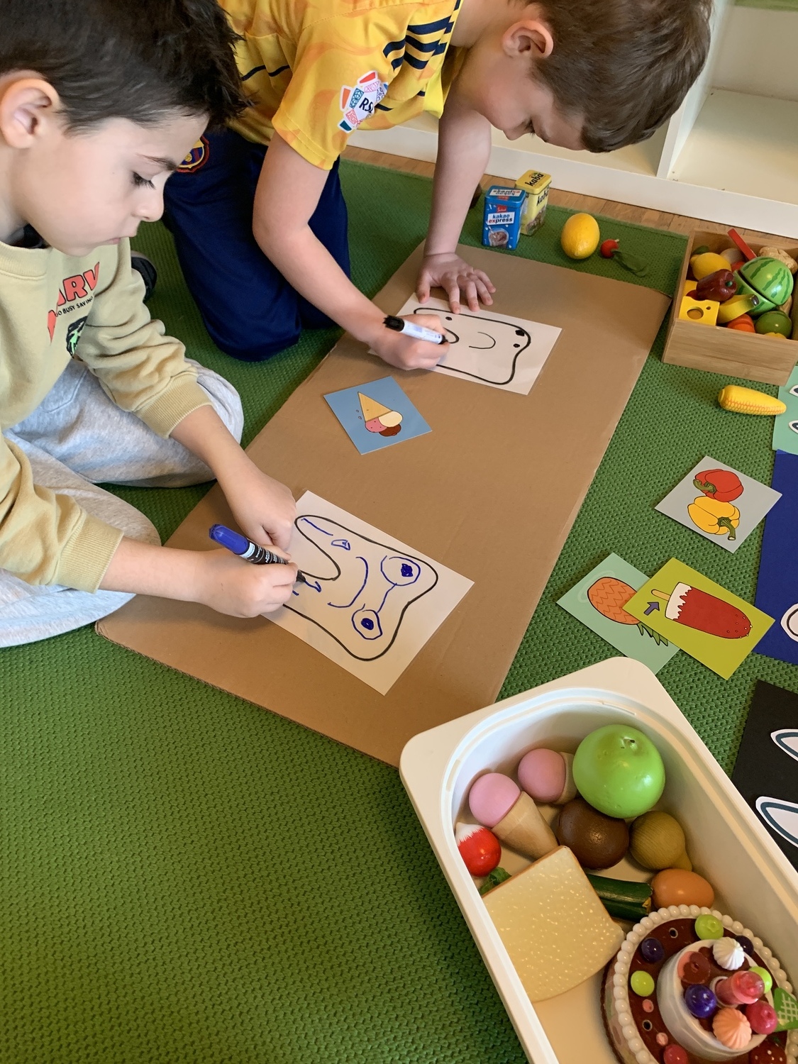 Ein weiterer Schwerpunkt liegt auf der bewussten Auseinandersetzung mit Zahnpflege. Warum putzen wir unsere Zähne? Wer freut sich mehr, wenn du putzt: du oder deine Zähne? Woher wissen Zähne, ob etwas gut oder schlecht für sie ist? Spielerisch lernen die Kinder, dass gesunde Ernährung und regelmäßiges Putzen zusammengehören. Gemeinsam betrachten wir Lebensmittel und überlegen, welche Speisen den Zähnen guttun und welche ihnen schaden können. Dabei wird nicht mit Verboten gearbeitet, sondern mit Verständnis und Maß.