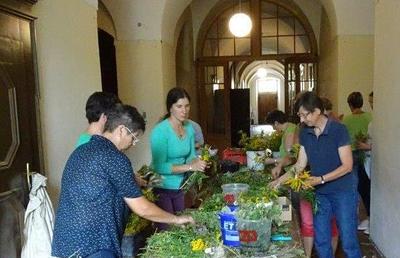 Kräuterbüschelbinden im Klostergang am 14. August 2018