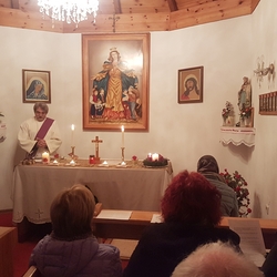 Um 19 Uhr wurde dann - wieder mit Diakon M. Zepf - die Adventkranzsegnung in der Kapelle Kaiserwald gefeiert.