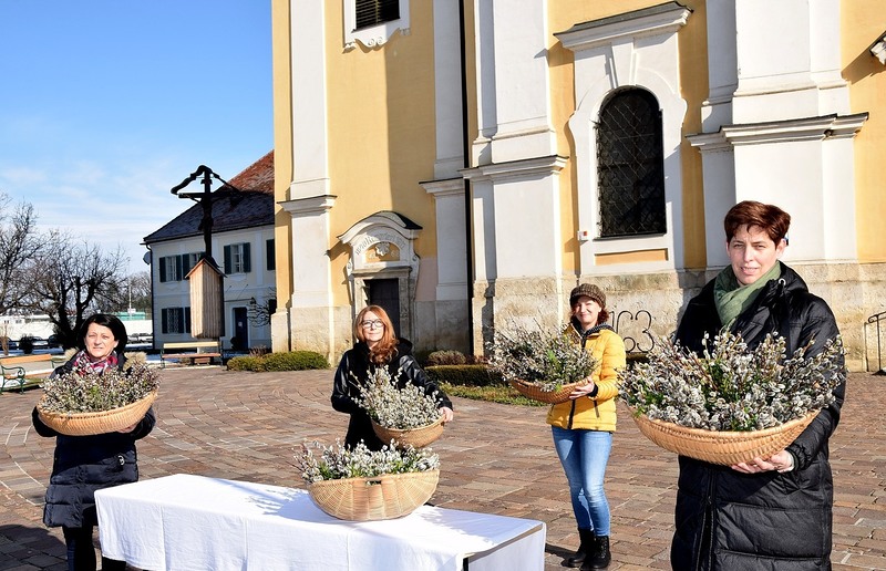 Mit Unterstützung einiger kfb Mitglieder wie Gerlinde Holler, Christine Kern, Rosi Klingler, Monika Winterleitner und Martina Zwath hat das Vorstandsteam der kfb St. Veit wieder Palmbüschchen gebunden. Am Sonntag nach dem Gottesdienst bei Sonnenschein aber eisiger Temperatur wurden die Palmbüschchen  gegen eine freiwillige Spende am Kirchplatz angeboten.